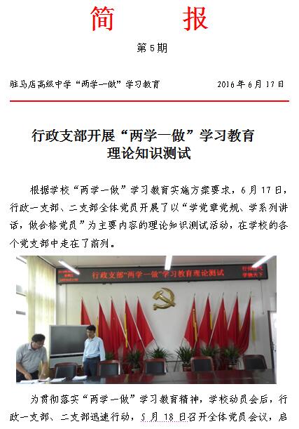 行政支部开展“两学一做”学习教育 理论知识测试