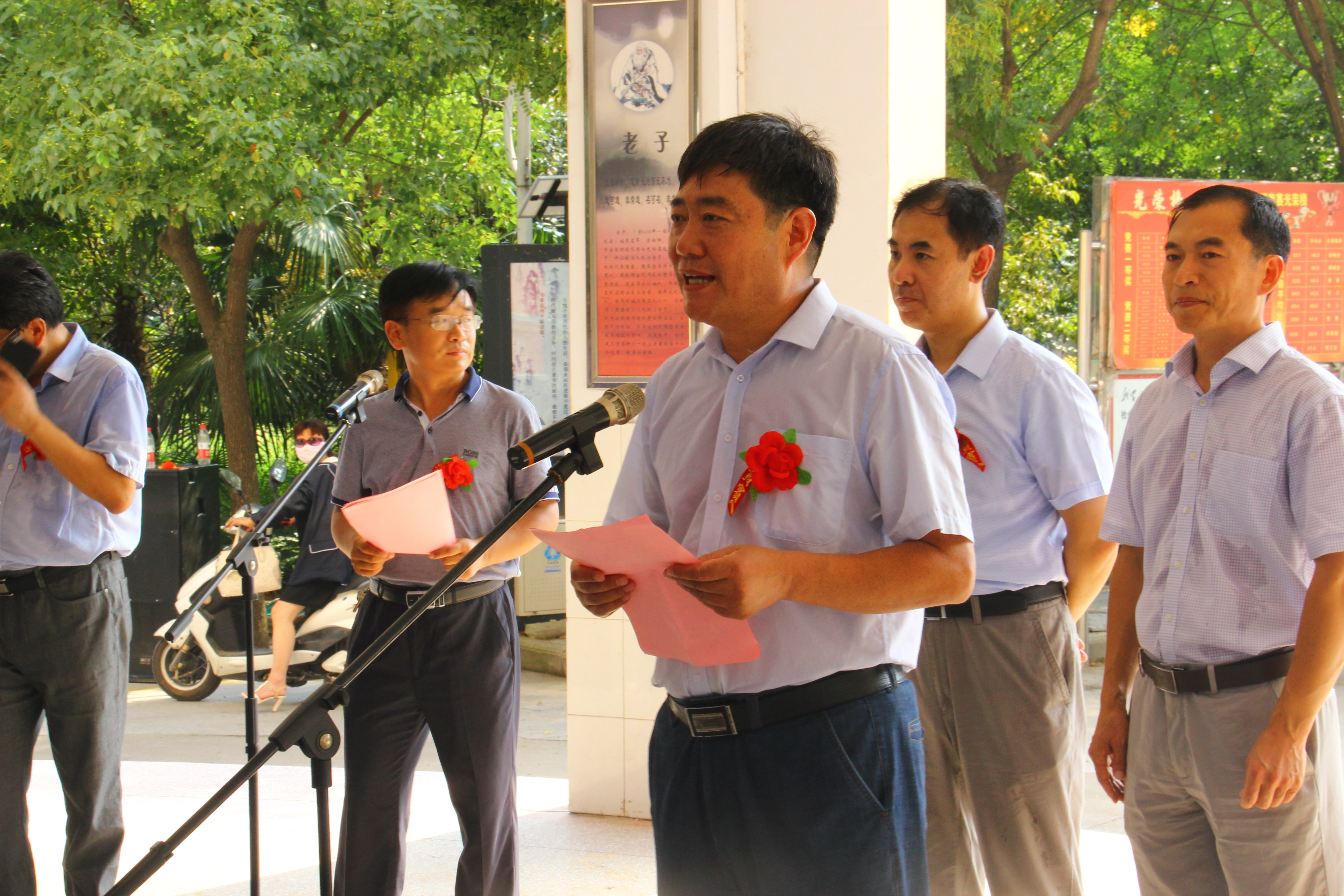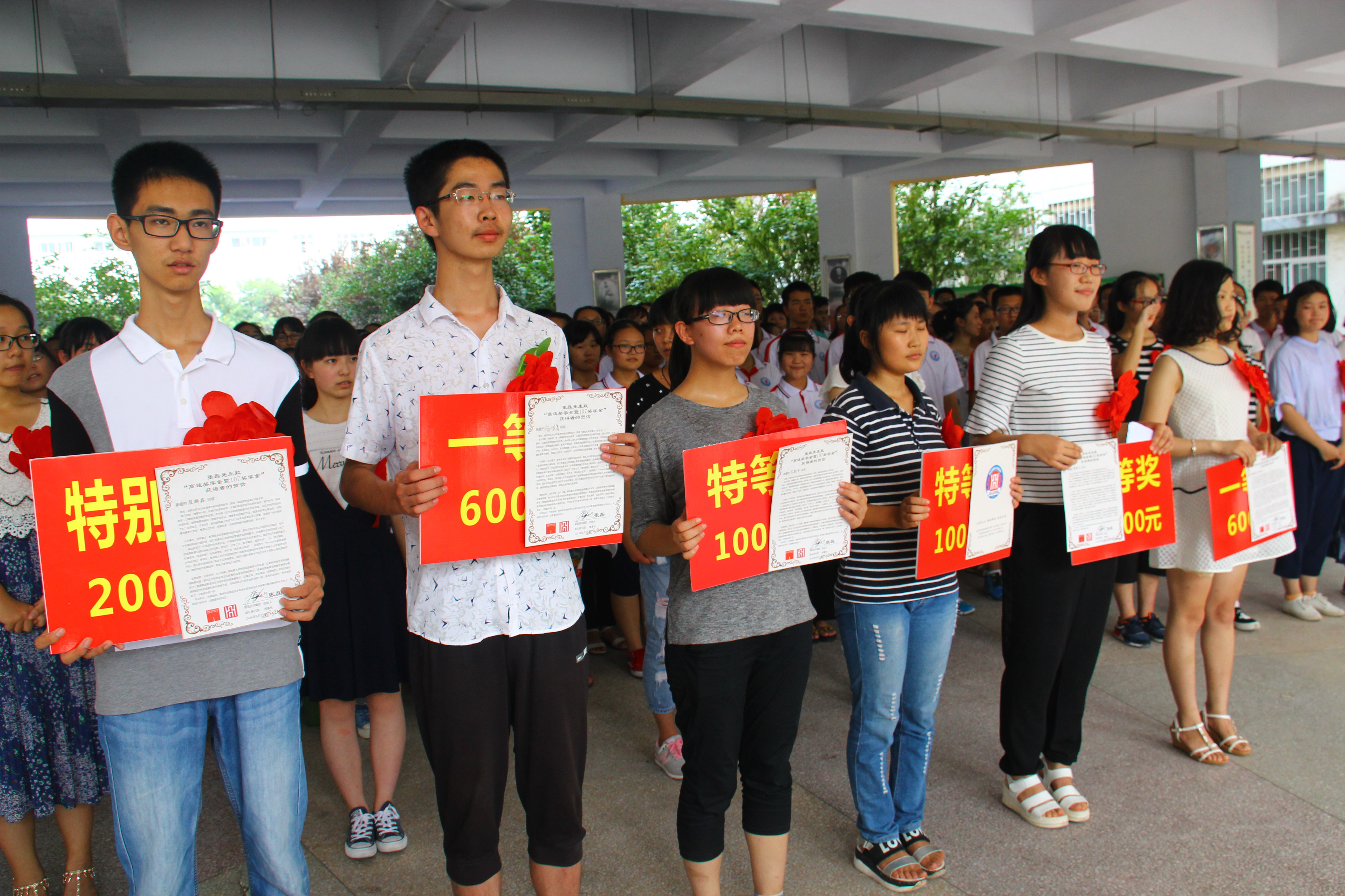 8月15日,我校在教学楼小广场举行2016年高瓴奖学金暨107奖学金发放仪式,高瓴资本集团执行董事李艳、中国人民大学高礼研究院执行院长卢斌博士、驻马店市政府副秘书长谢李利、驻马店市教体局局长李华,我校全体班子成员、中层干部、教师代表和宏志班学生参加,仪式由我校党委书记王红卫主持。